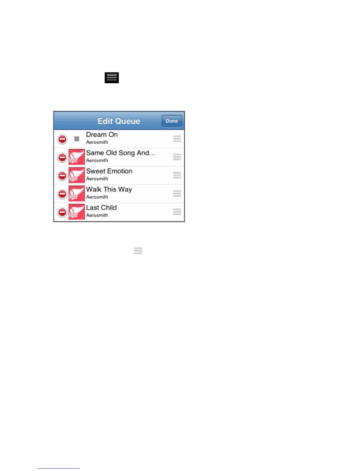 1. Tap the Queue icon at the bottom of the Now Playing screen.