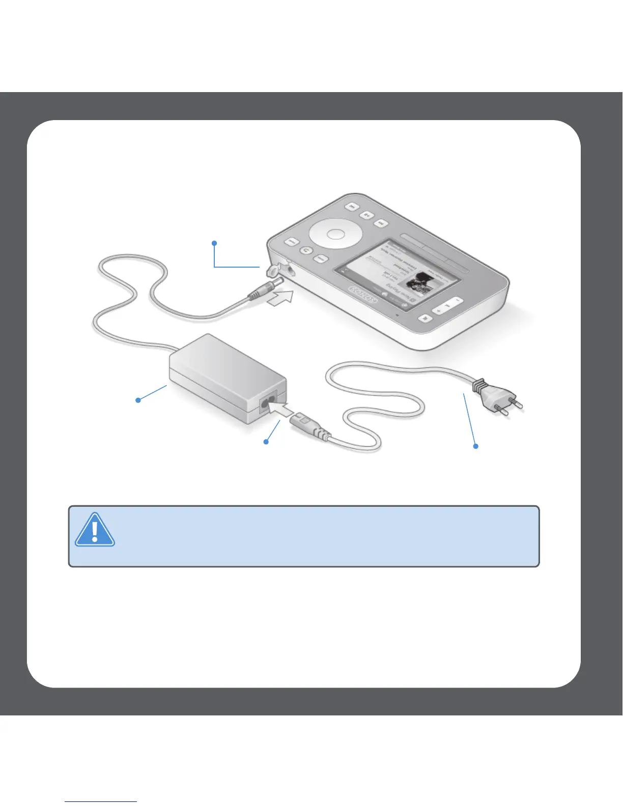 Attention utilisez uniquement l'adaptateur d'alimentation fourni pour