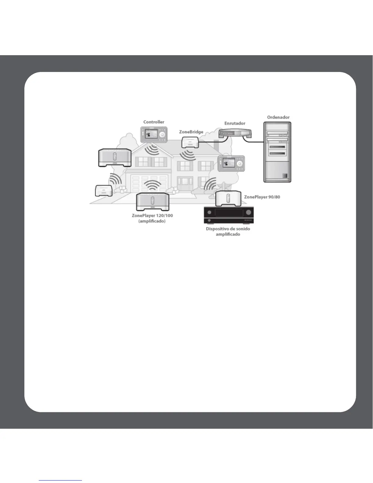 El producto ZonePlayer 90 se ha diseñado para utilizarse con un amplificador externo.