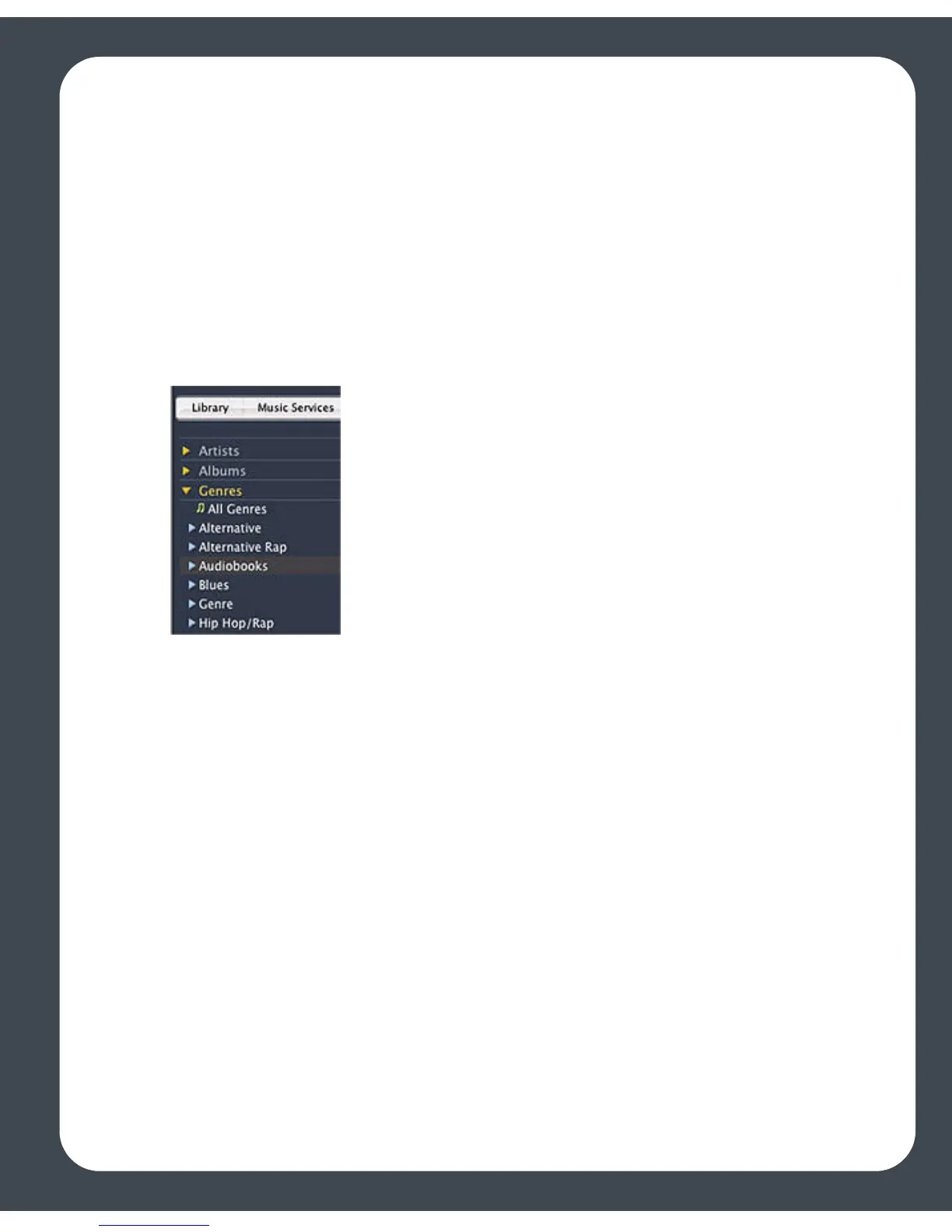 It’s easy to view your Audible files by genre. From the Music Library, select