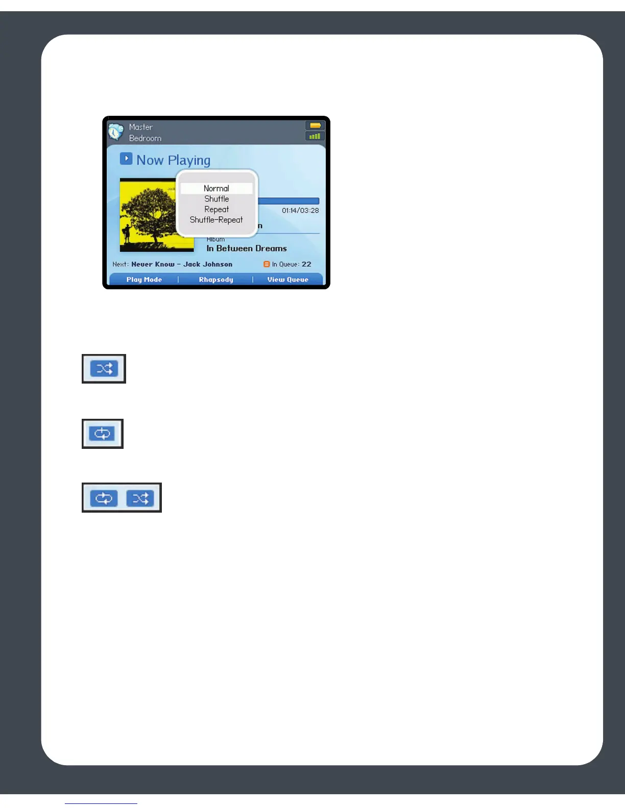 The selected play mode appears as an icon on the Now Playing screen.