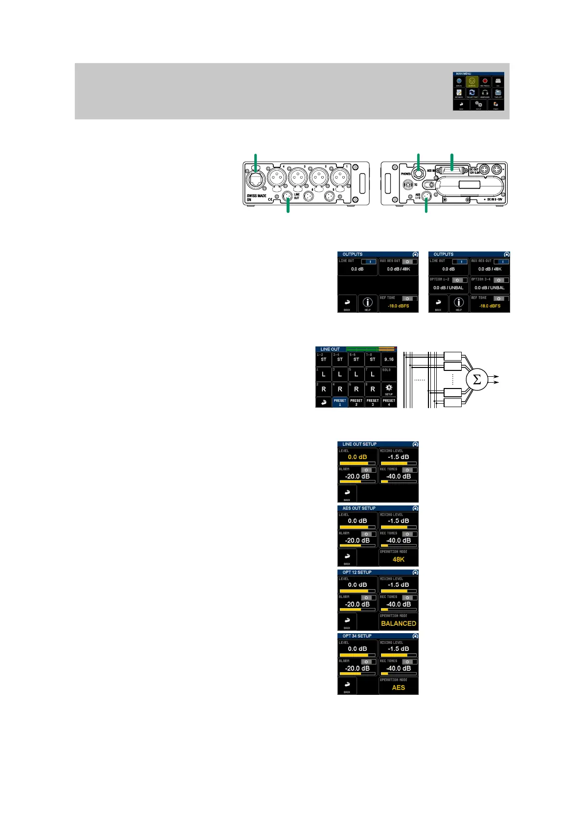 LINE OUT: 2 channels unbalanced line output (TA3)