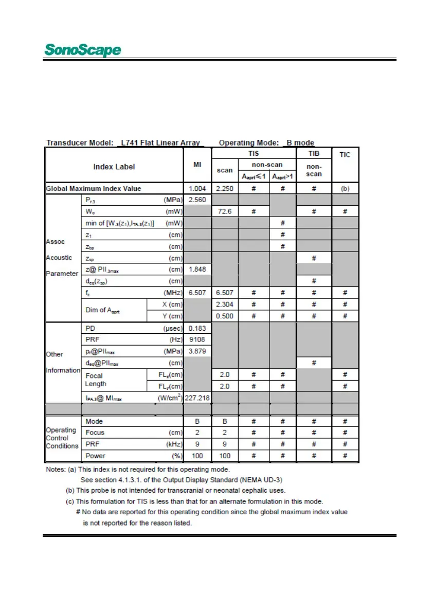 Sonoscape L741 - Acoustic Output Tables