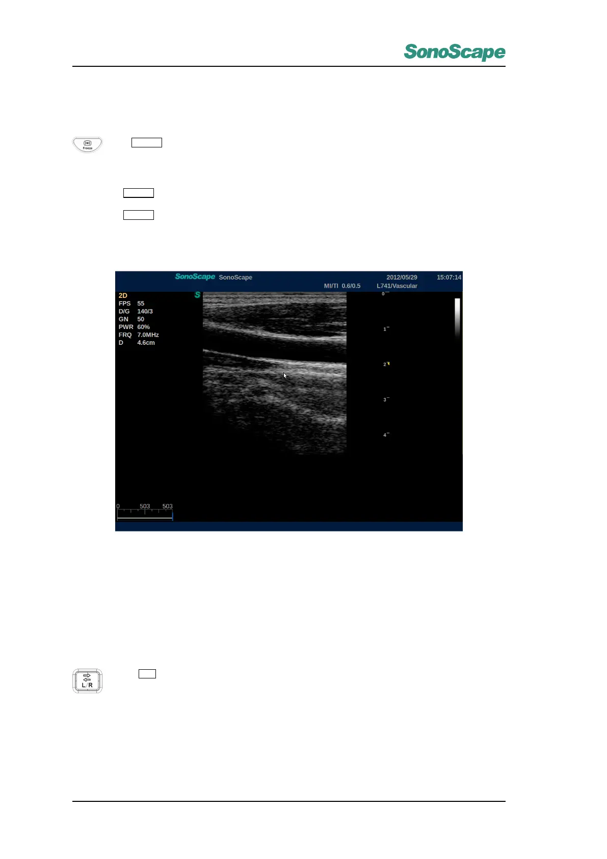 Key in real-time scanning mode to freeze the image and stop scanning;;.