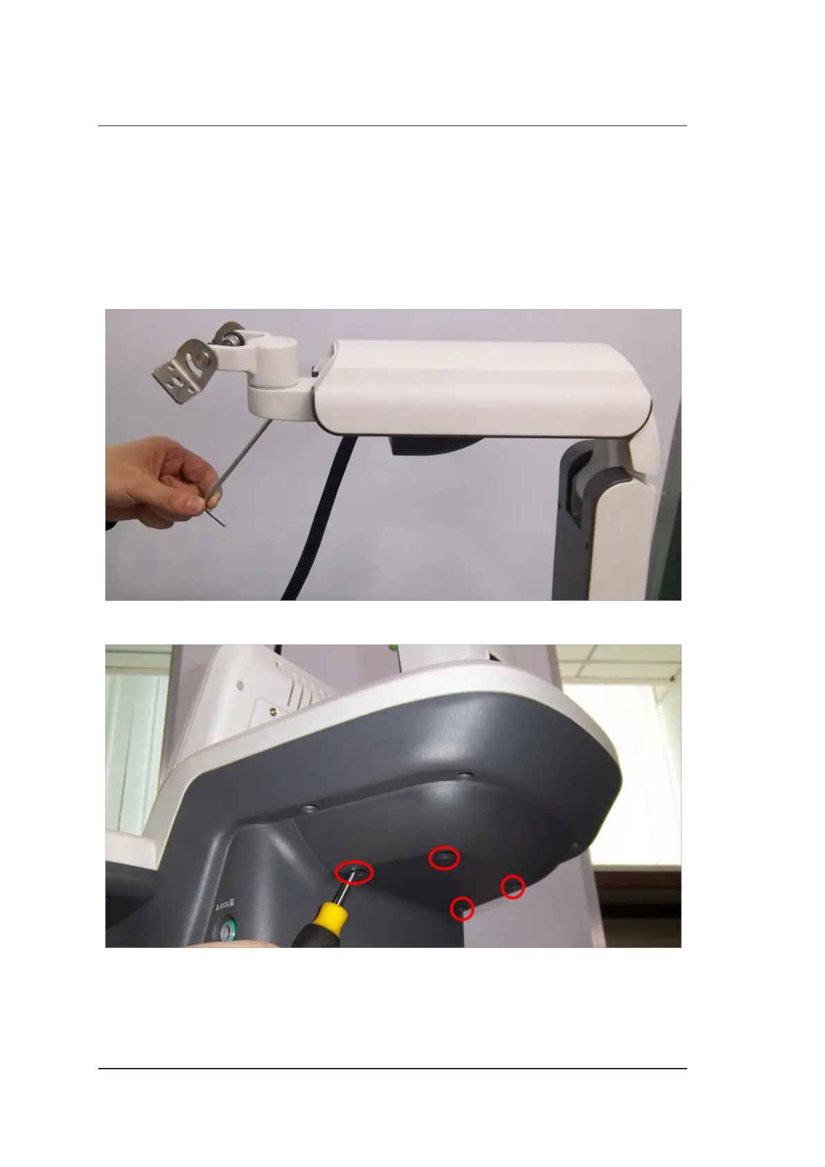2. Use the hex key wrench (4mm) to remove the screws and take out the display linkage assembly.
