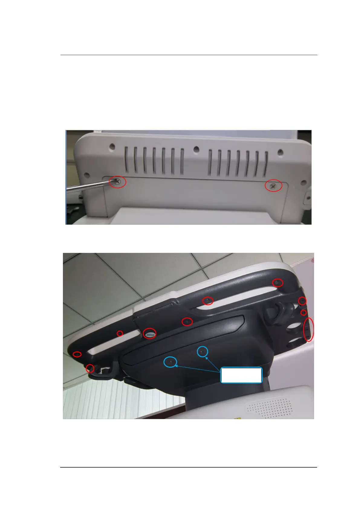 1. Use the cross screwdriver to remove two screws from the back cover of the touch screen.