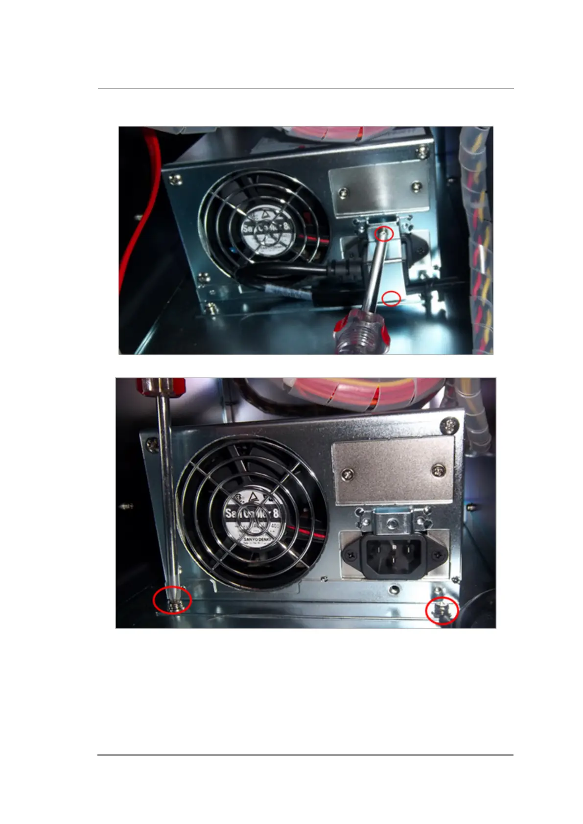 6. Pull out the power supply conversion cable, remove two screws to take out the power supply.