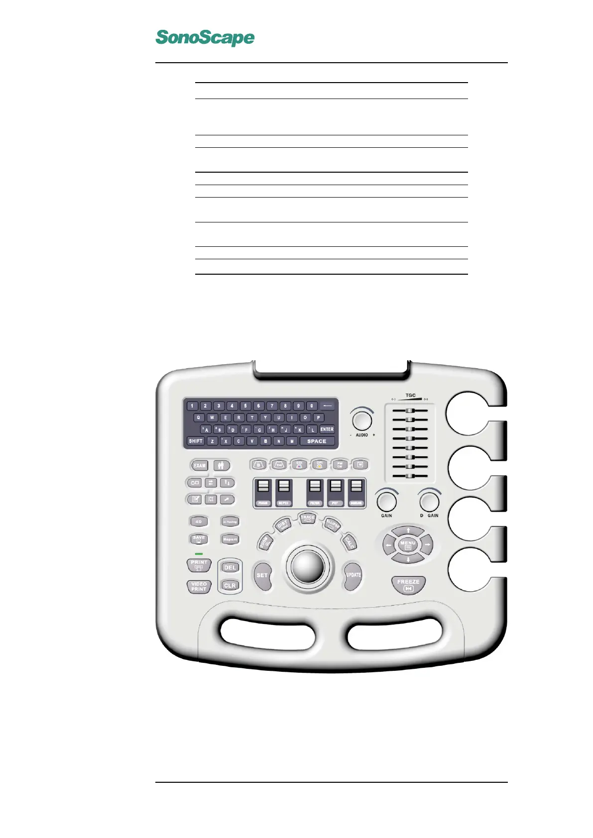The keyboard layout is shown in Figure 2.3. It consists of hard keys, knobs, a