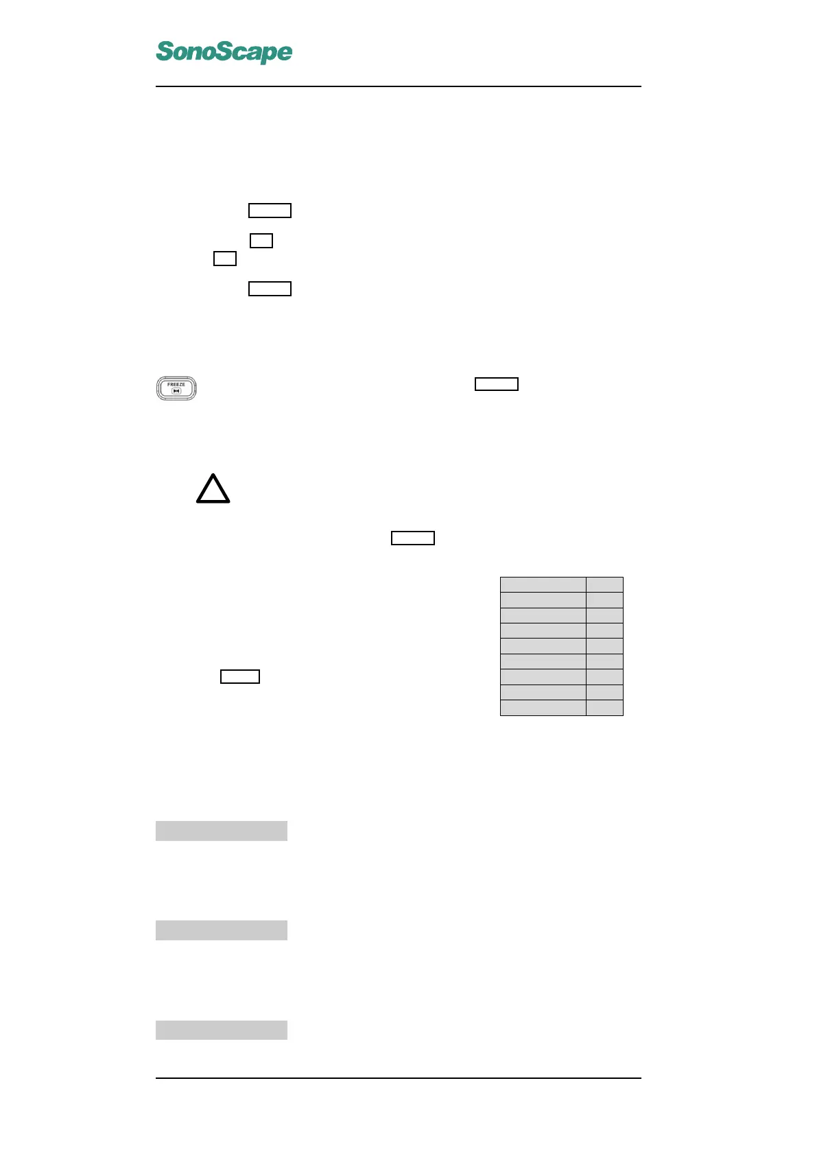 During the real time B mode scan, press the FREEZE key to freeze the im-
