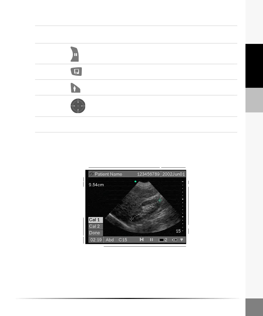 Freeze Press to freeze an image. Measurements can be made on a frozen