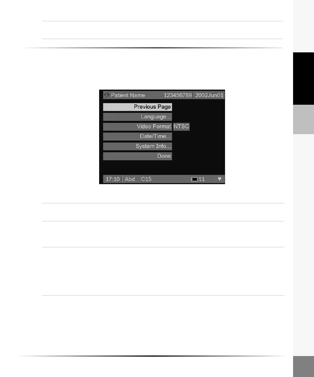 4 Press the Patient key at any time to exit System Set-up and return to live imaging.