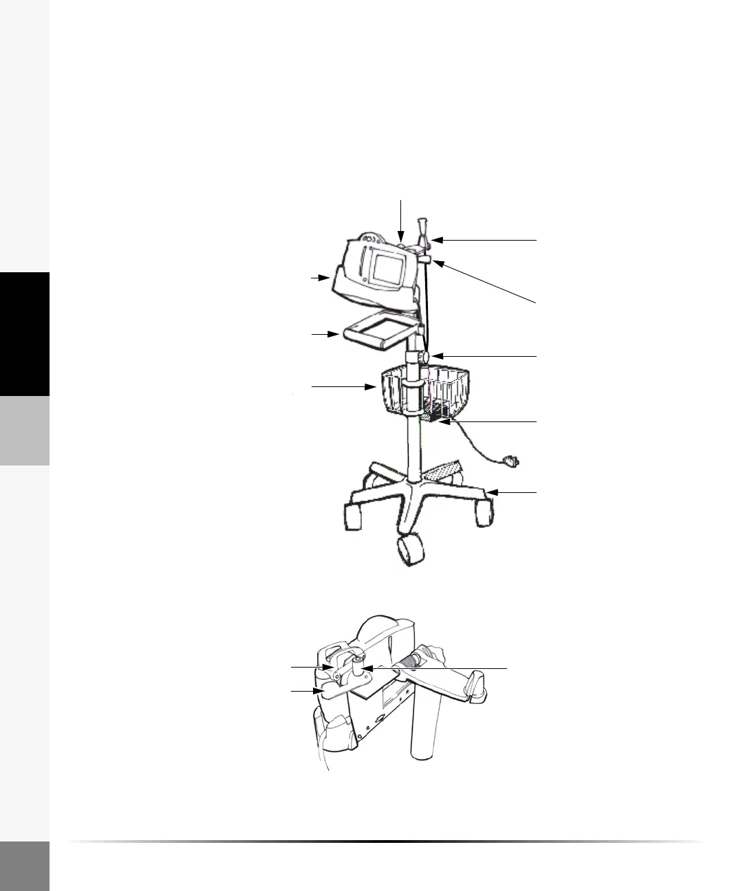system. The stand also provides connections for the power supply, an RS-232 cable for downloading