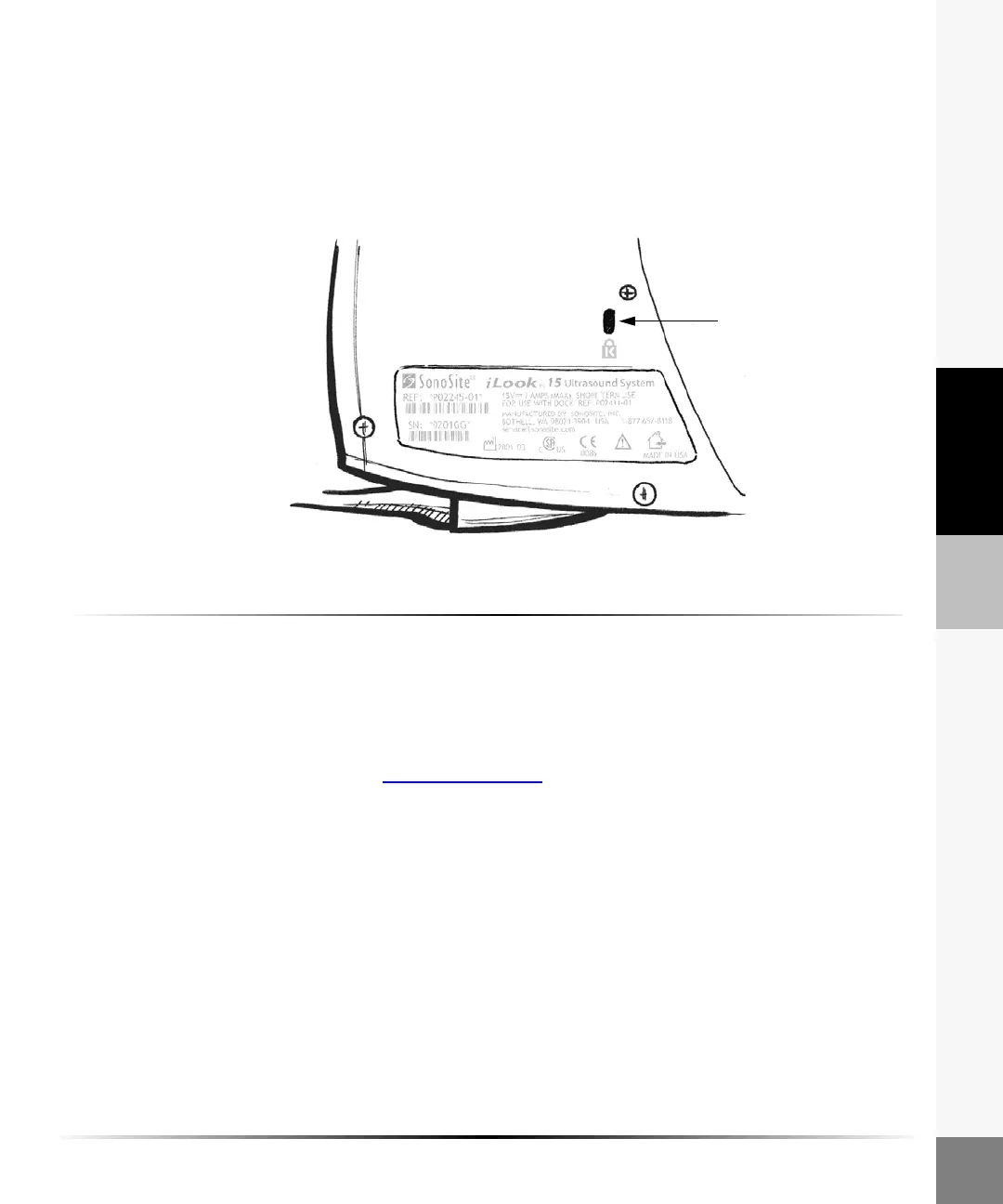 To prevent unauthorized removal of the ultrasound system, you may use a Kensington security