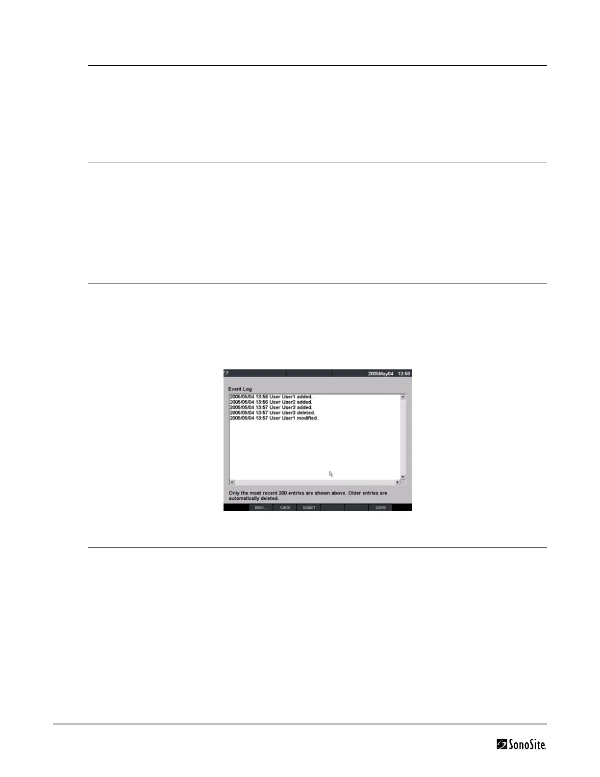 The Event Log collects errors and events and can be exported to a CompactFlash card and read by a CompactFlash