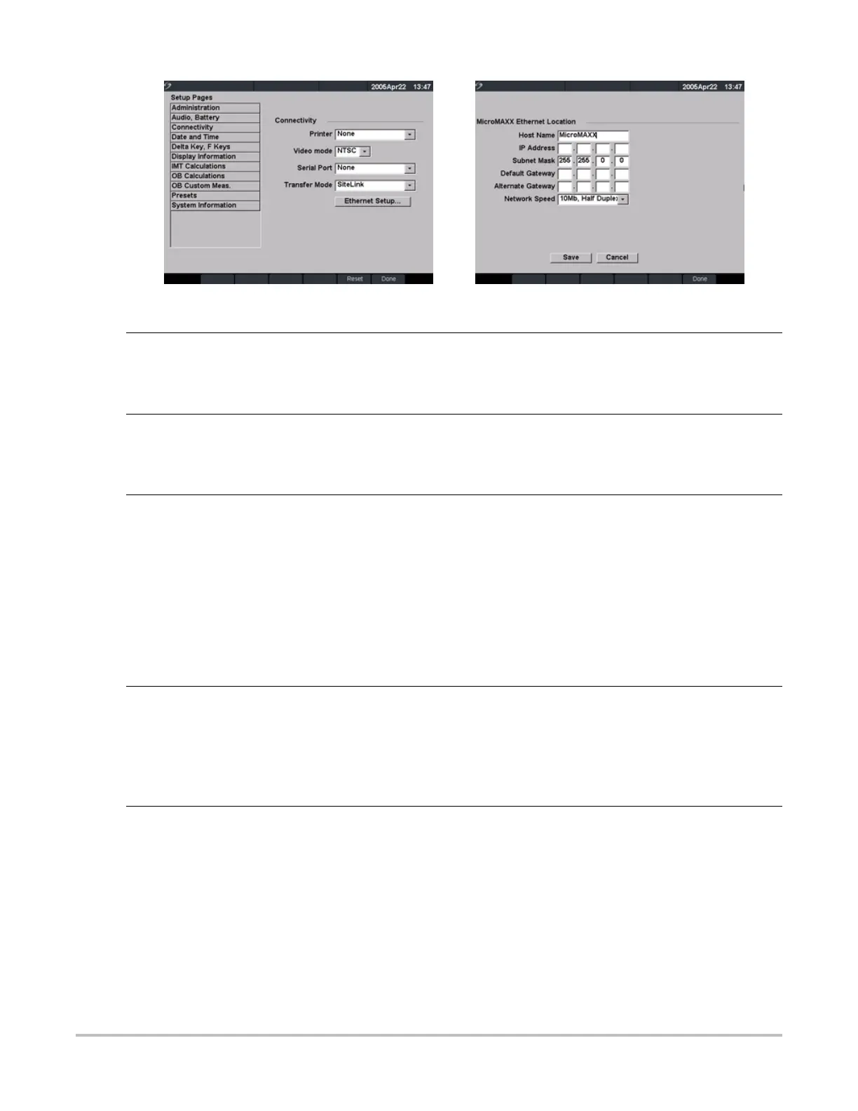 Figure 10 Setup Screens: Connectivity and Ethernet