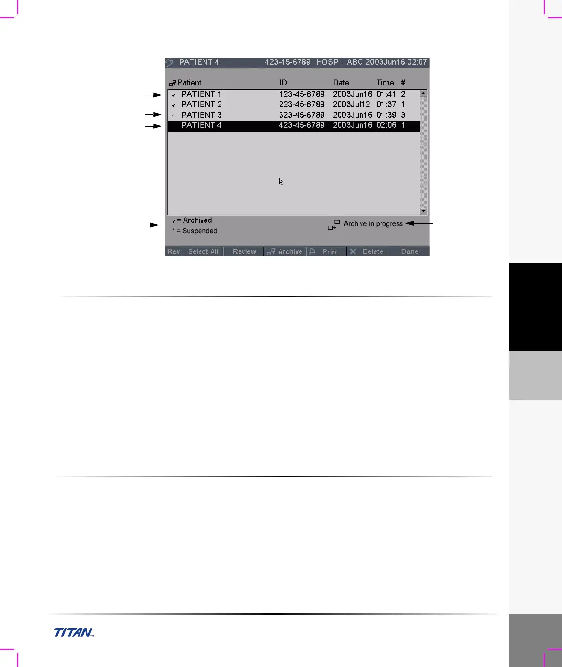 • Patient exams that are not checked are pending archive.