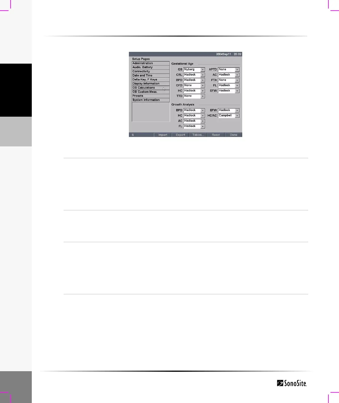 Figure 16 Setup Screen: OB Calculations