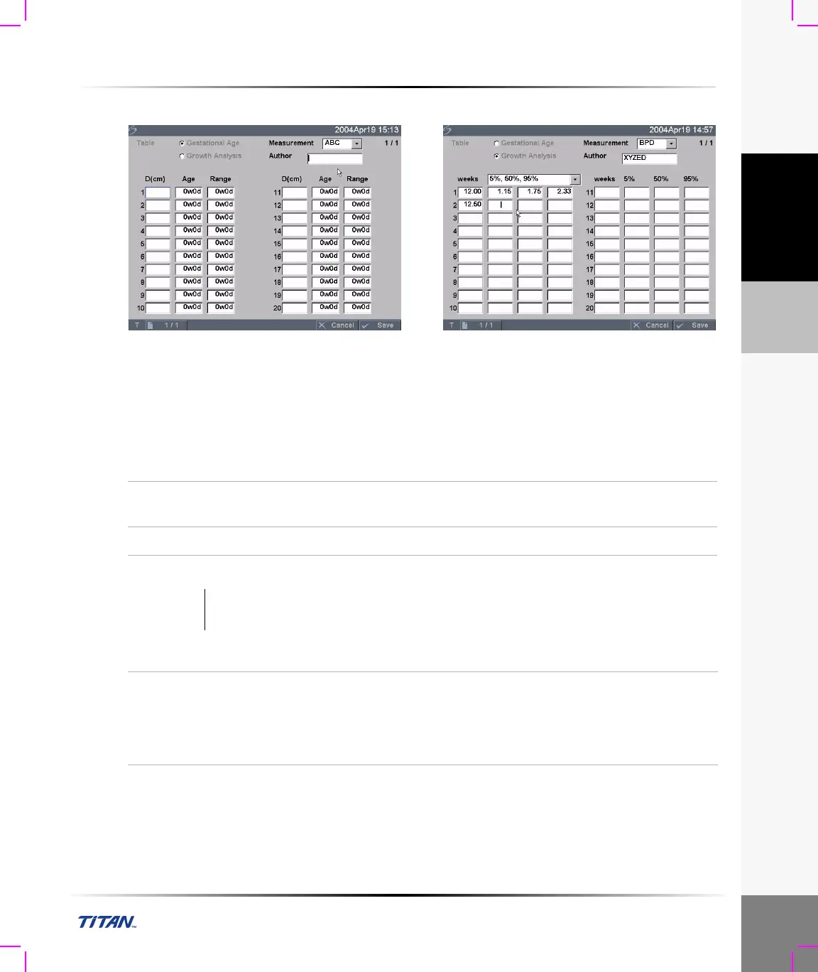Age Table Measurements: The system provides gestational age measurements by selected authors
