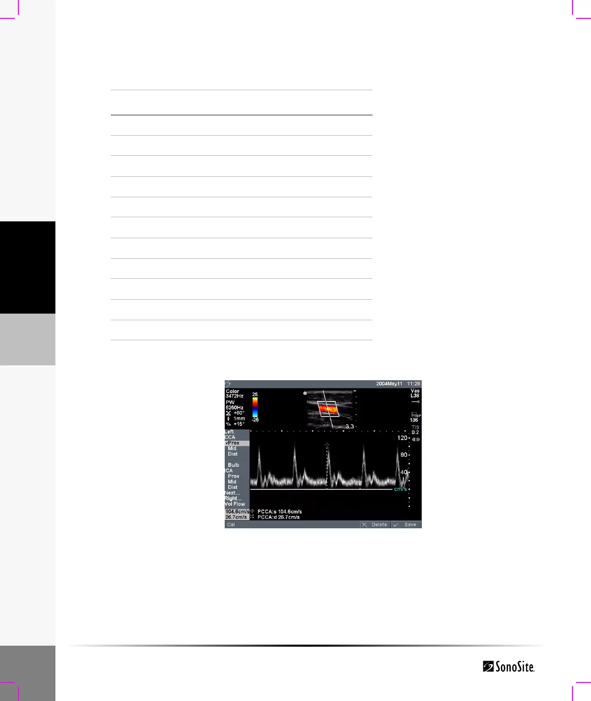 Note: After vascular measurements are performed, values used in the ICA/CCA ratio are selectable on the