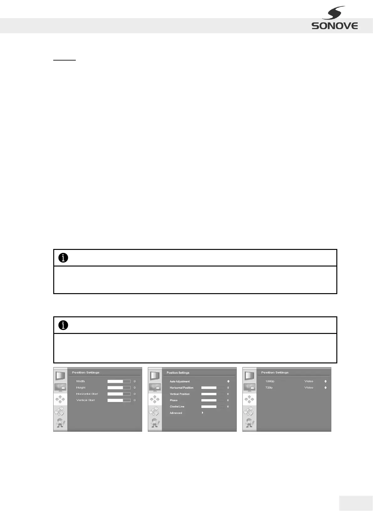 Please notice that the range of possible configurations within the OSD Menu “Poition Settings” depends on