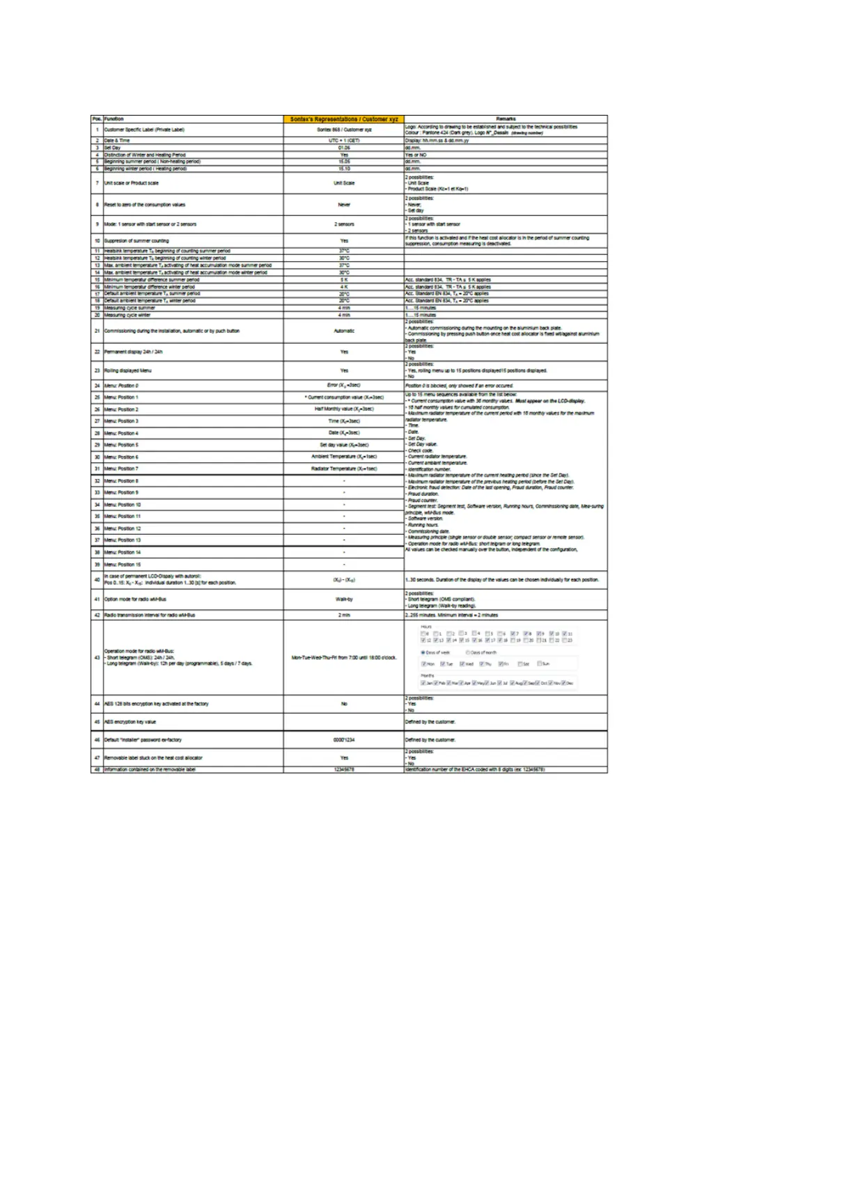 Example of a setting sheet for Sontex 868 :