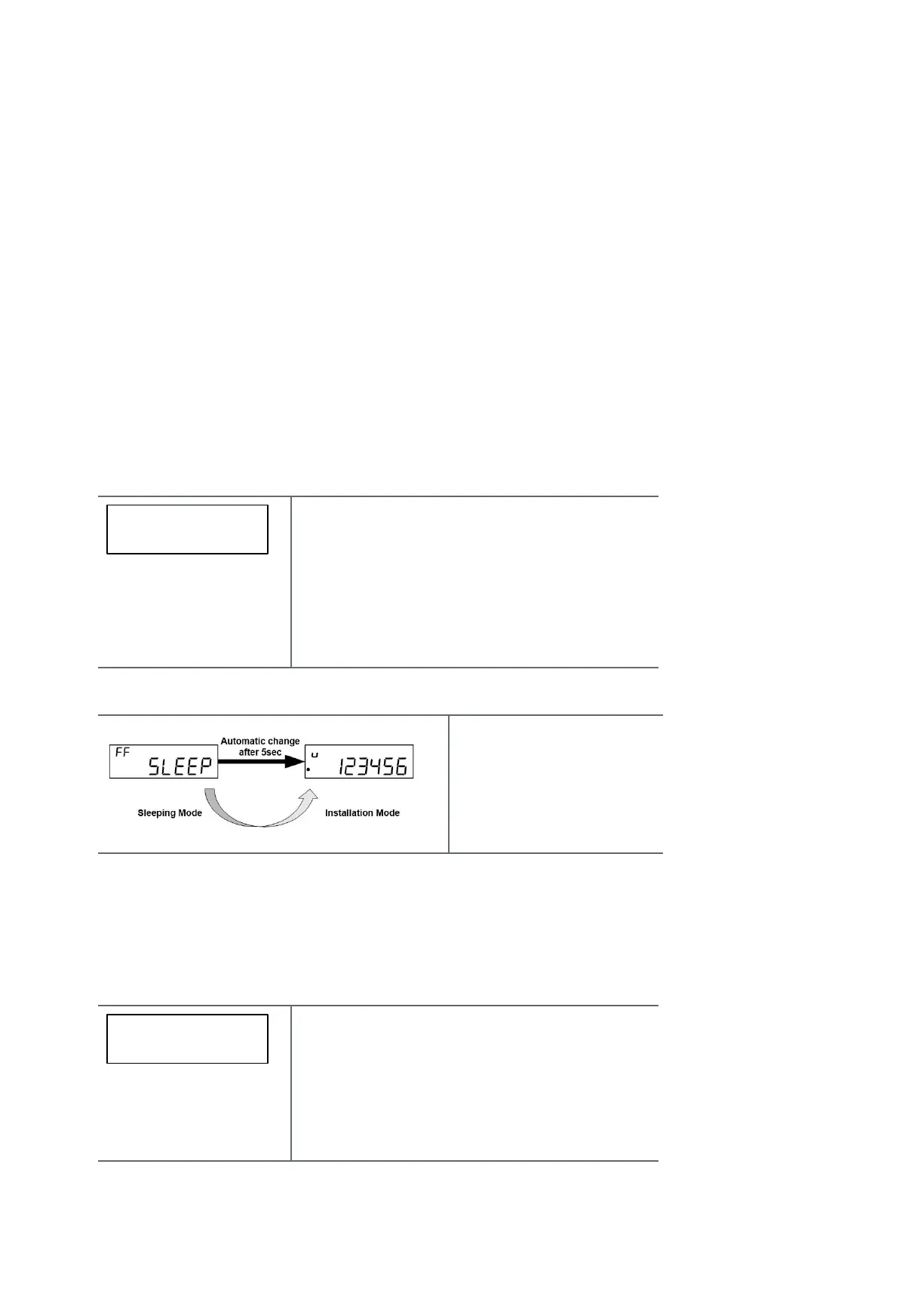Transition from sleeping to installation mode is achieved automatically after 5 seconds: