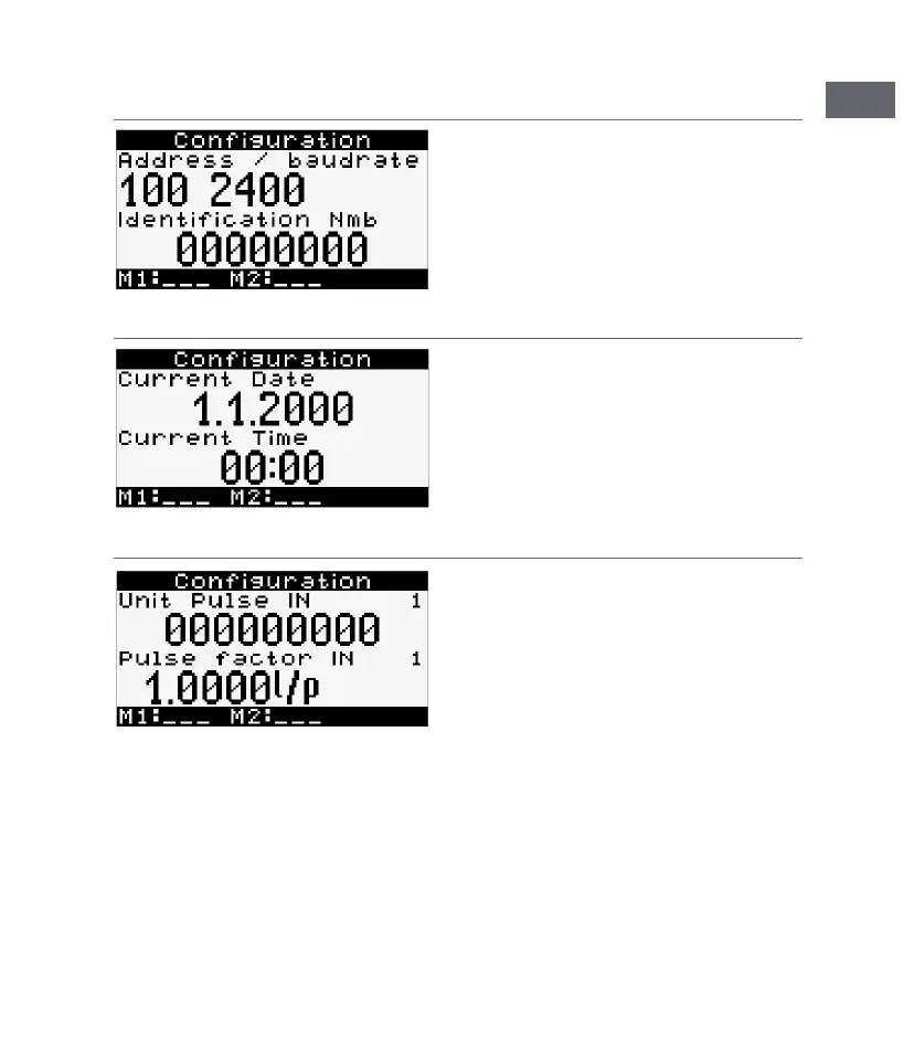 Sontex Supercal 5 - Configuration Menu: Address and Time; Address and Baud Rate Configuration; Date and Time Setting; Configuration Menu: Pulse Inputs