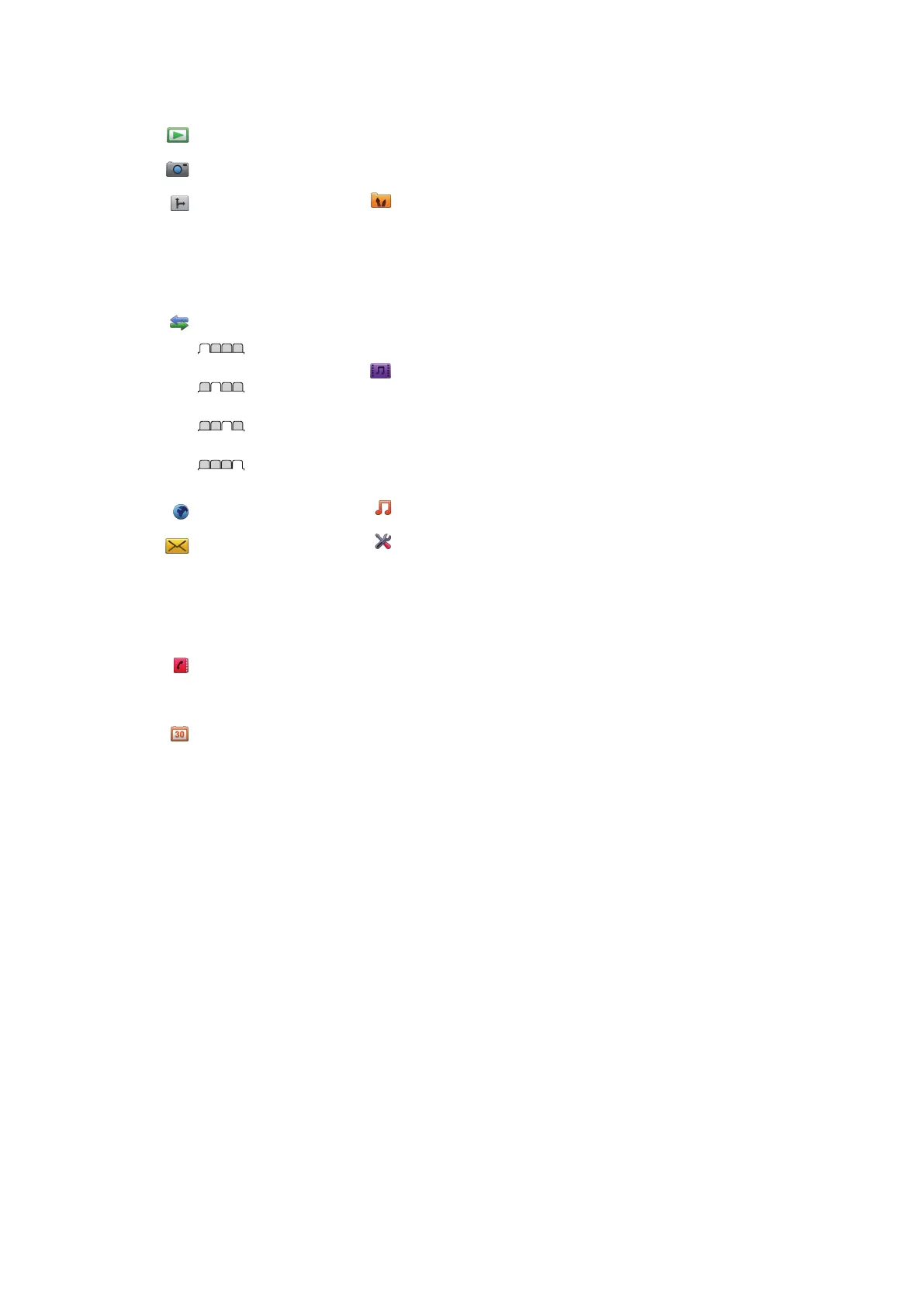 Sony Ericsson Aino - Menu overview; Menu categories