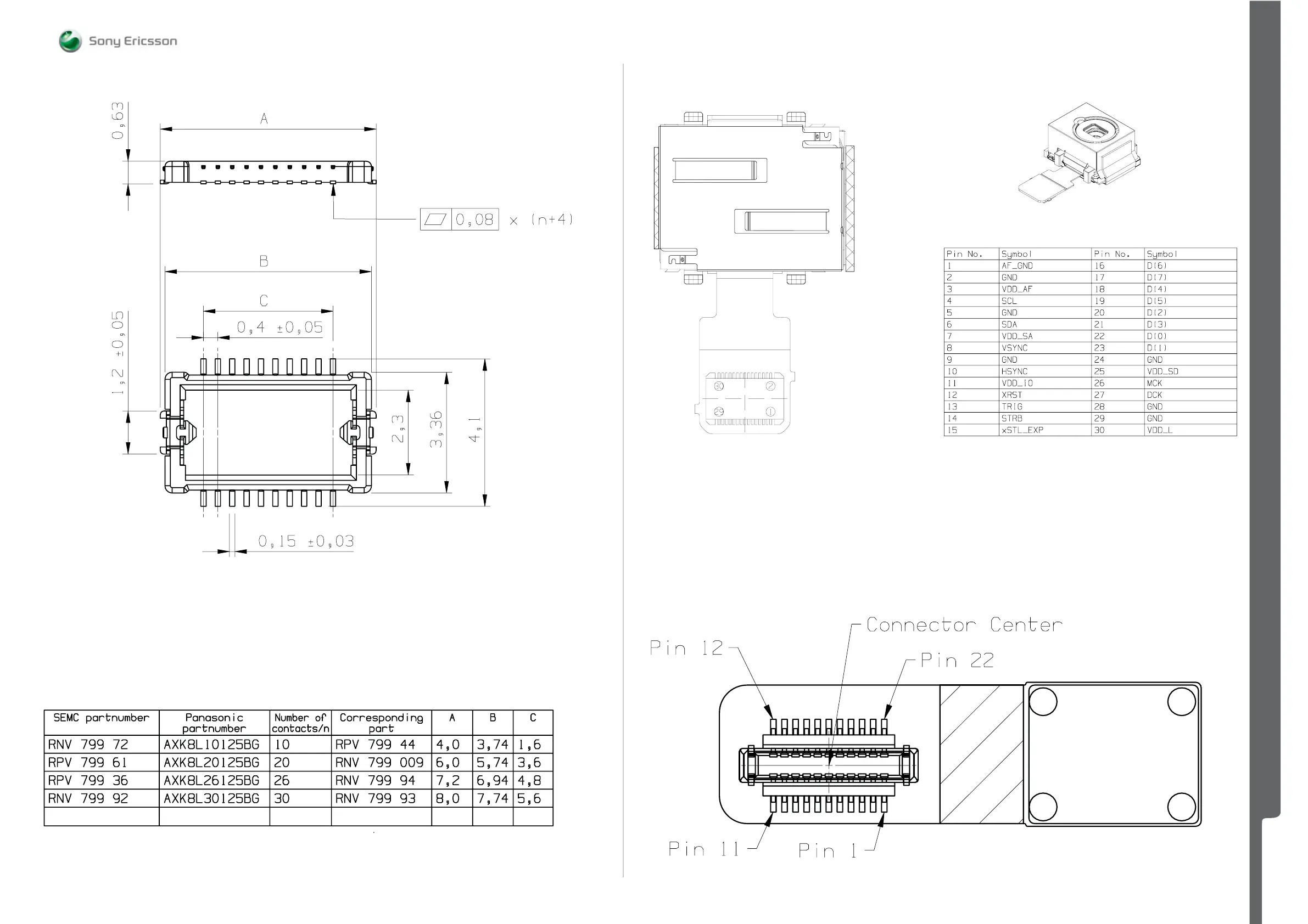 X4301 30 Pin BtB, male (Camera) RNV79992