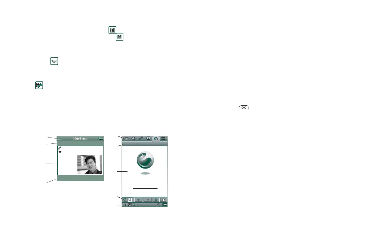 E Status bar Displays device status information such as: signal