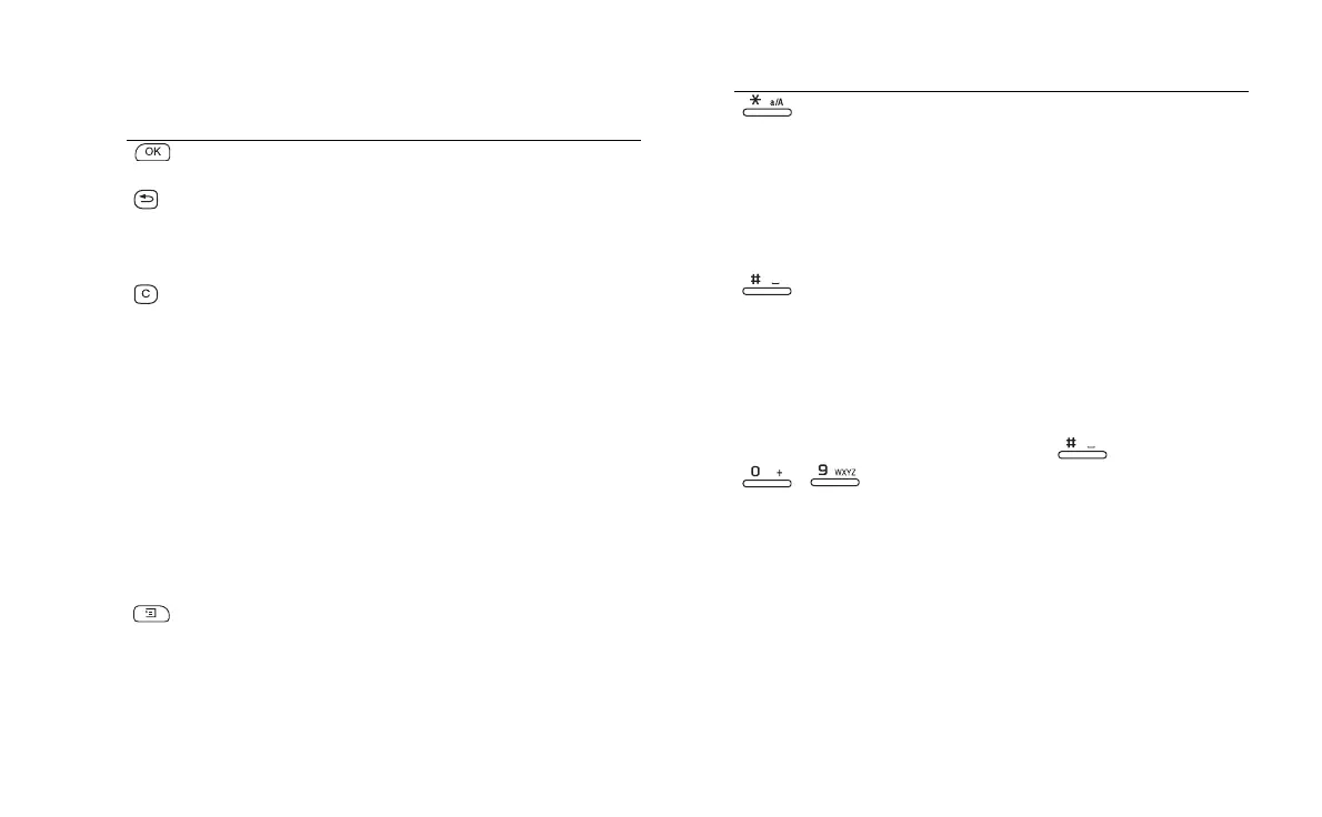 • Press and hold to change between T9 and