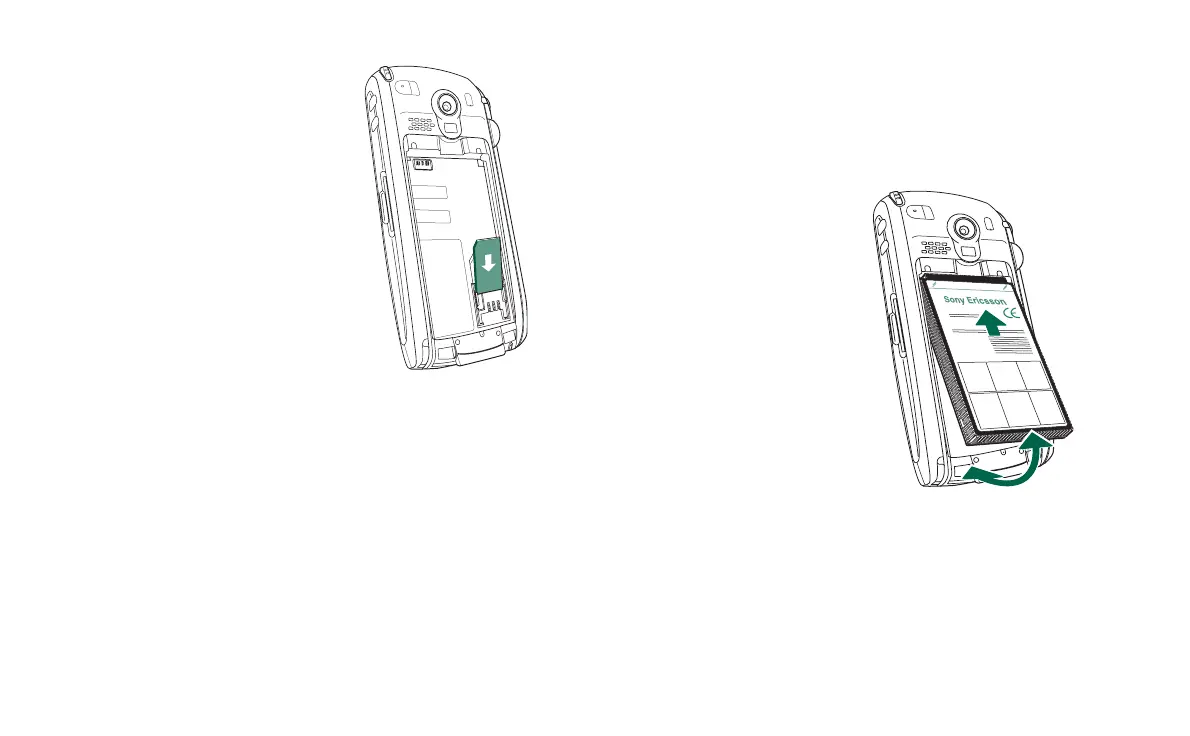 slide it down the P910i. Insert the SIM card as shown in the