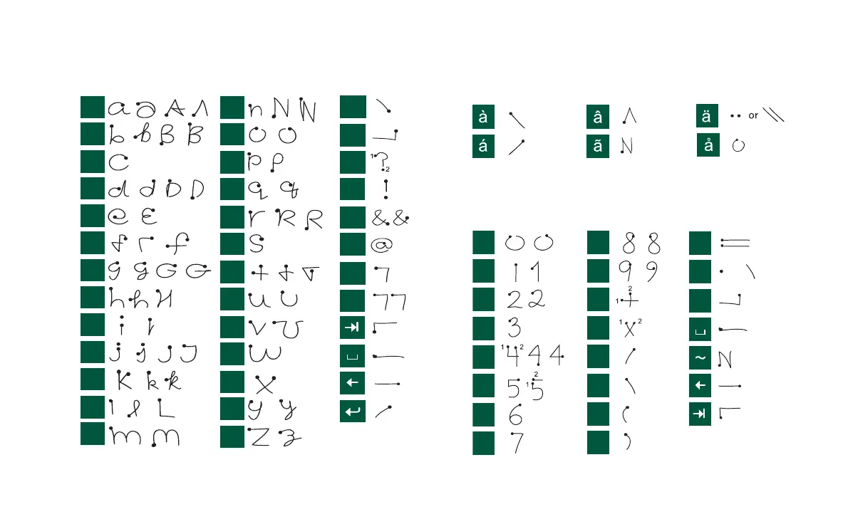 above the arrow. Other such characters, for example, ö and ü,
