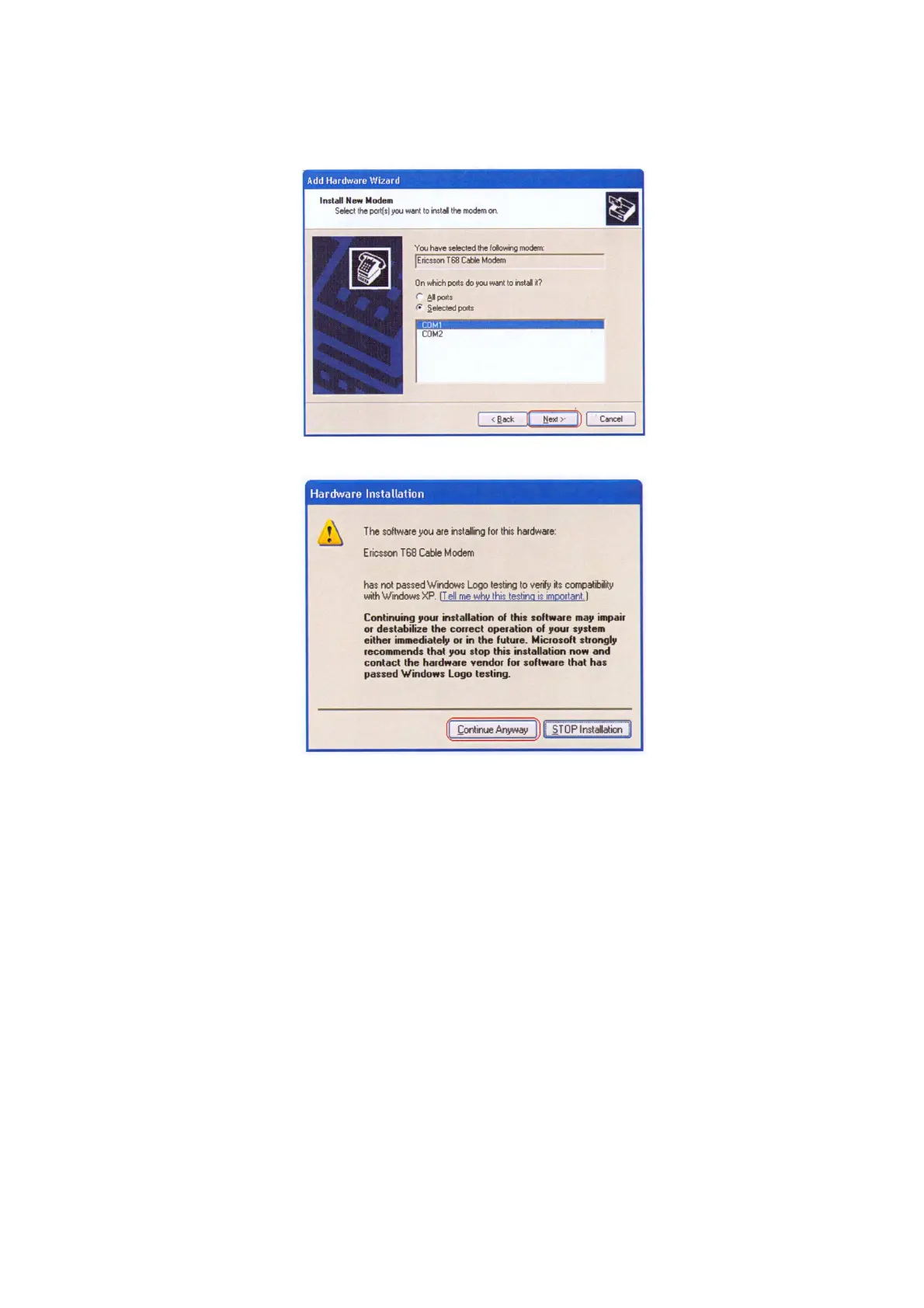 4.Select the modem you want to use and then click Next. If you only have one modem installed,