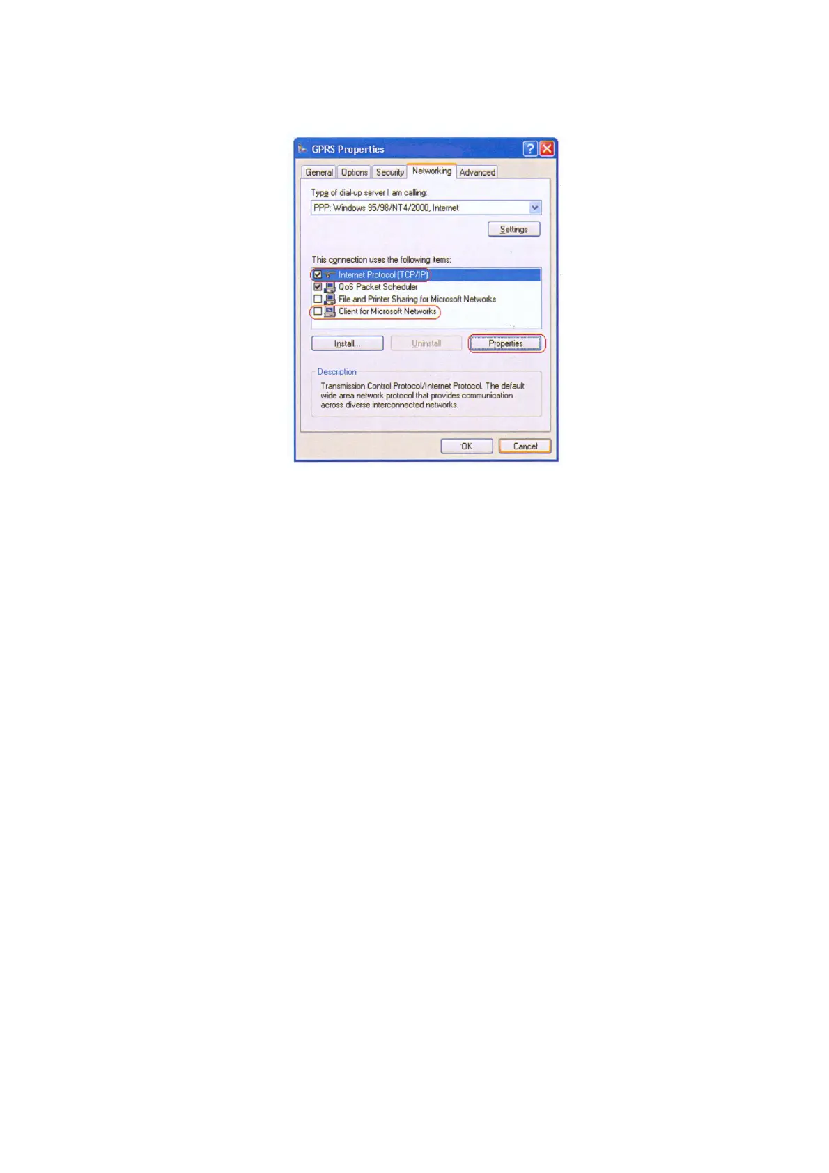 4.Make sure the telephone number (that is, the GPRS dial string, for example,