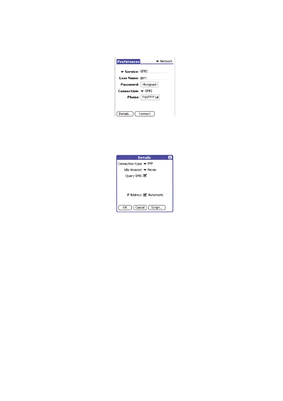 in the Palm™. If a user name and a password is not used by your operator, you have to use a