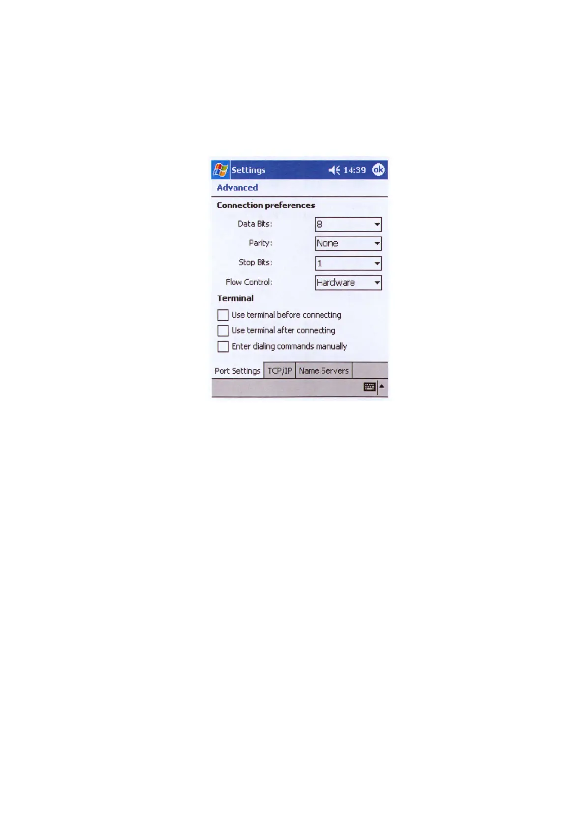 • Term inal: leave check boxes cleared