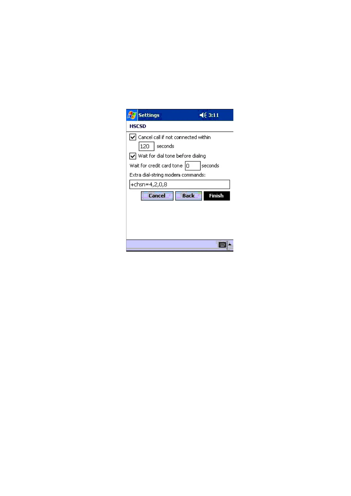 • Extra dial-string modem commands: Depending on the connection you want to use (number