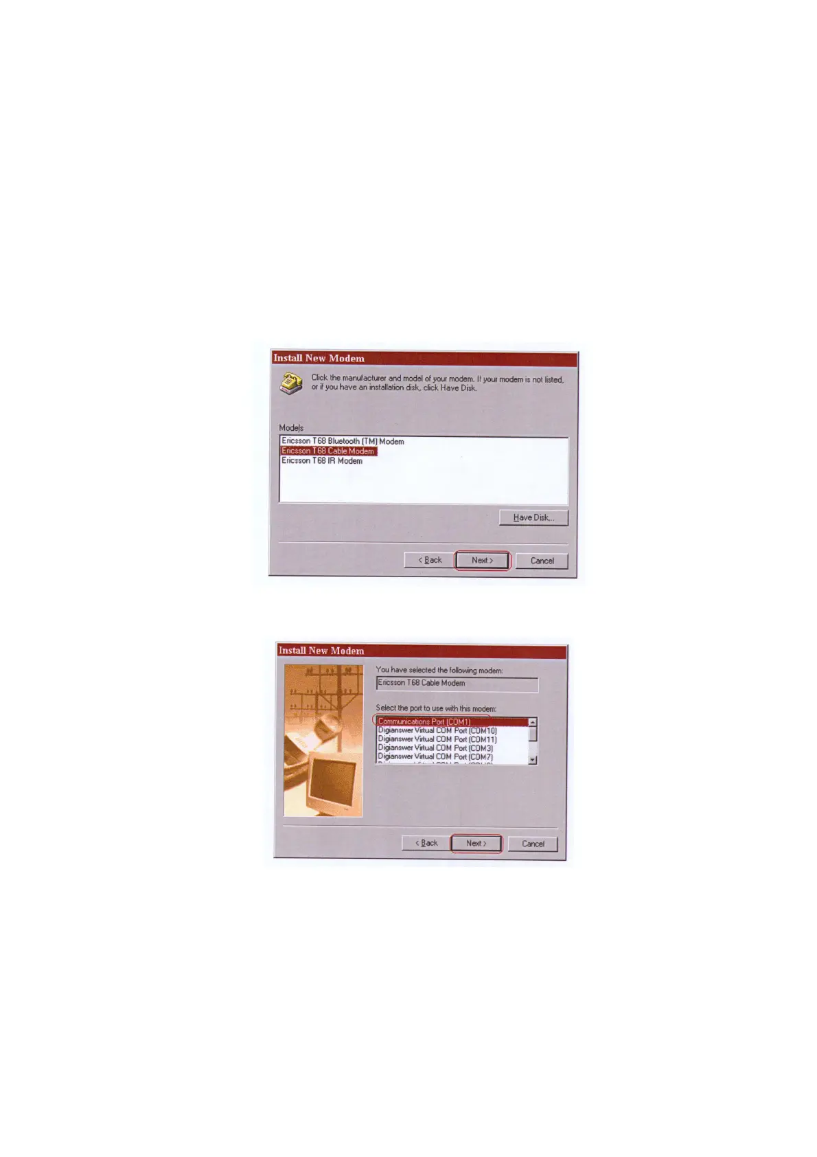 Note: If you have already installed a T68 modem, or Ericsson Mobile Modem Settings for