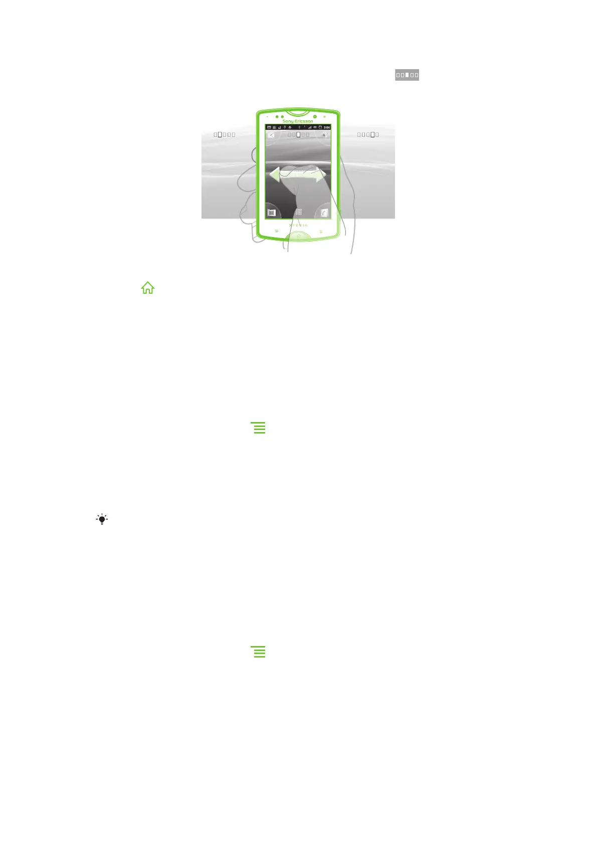 The Home screen extends beyond the regular screen display width, so you need to flick