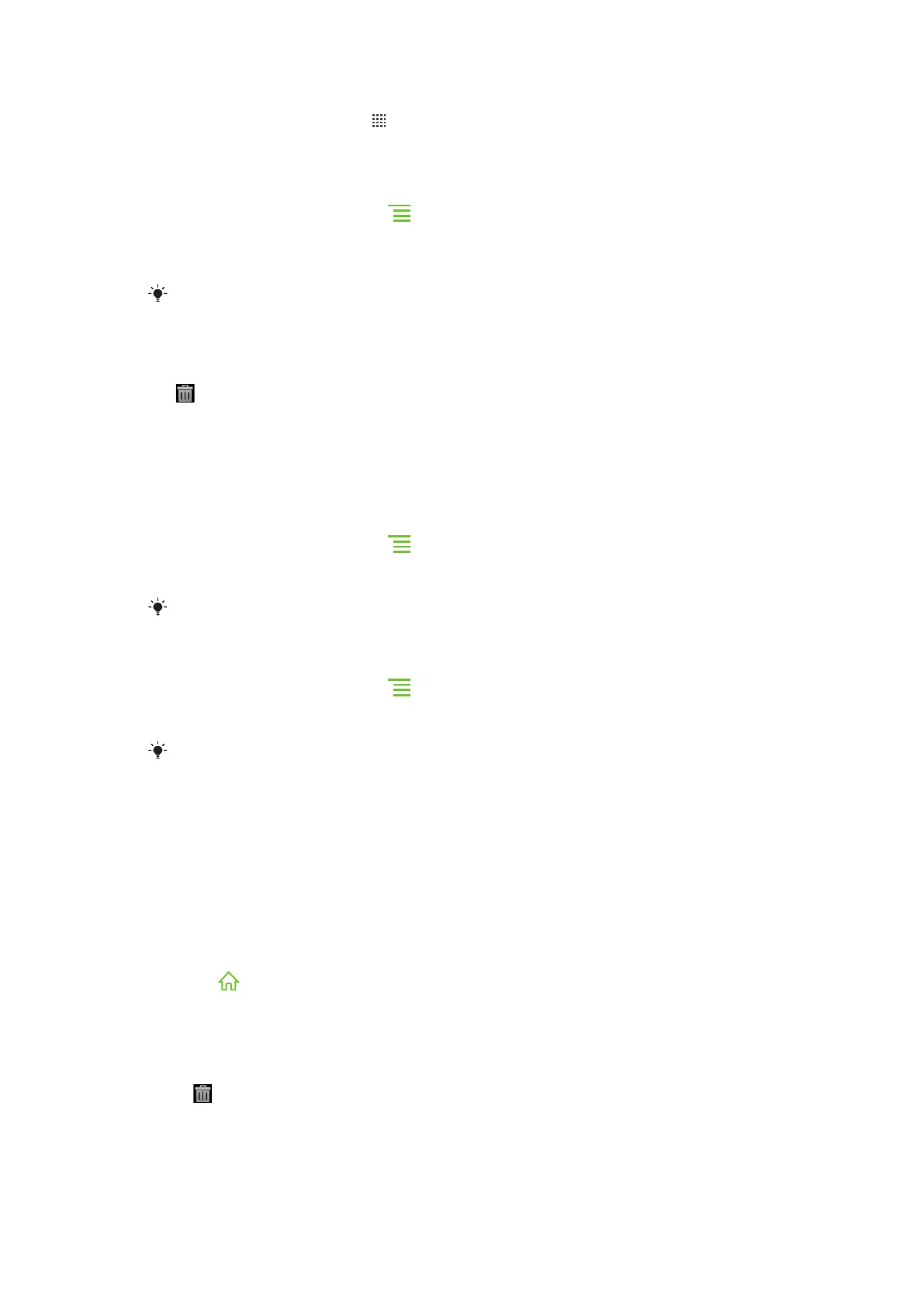 To delete an item from the Home screen