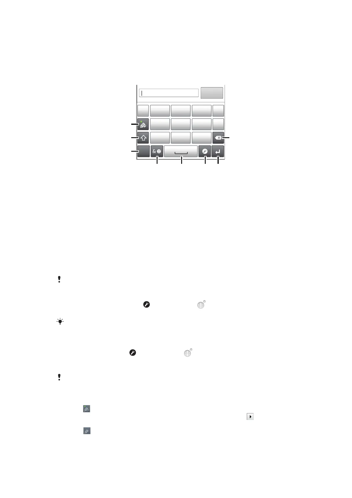 6 Open the input settings menu to change, for example, the Writing languages. This key also changes the