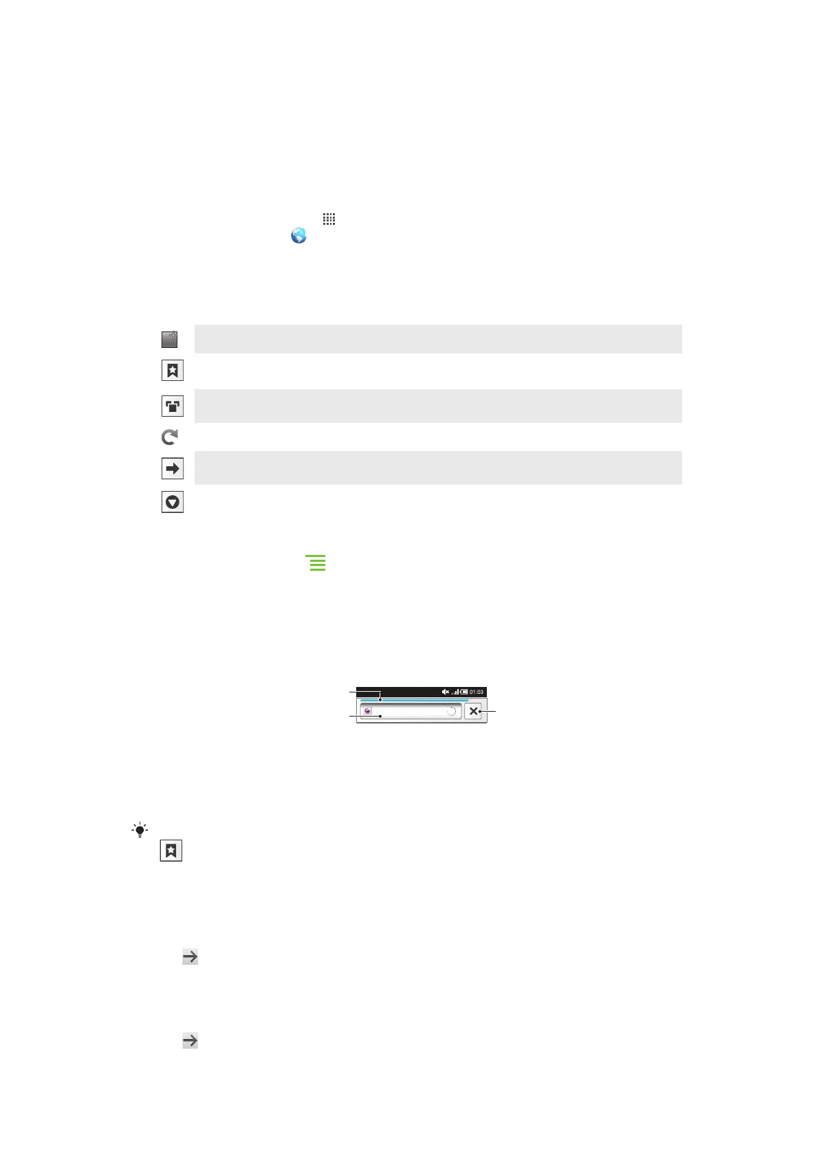 Add, open or edit a bookmark. View your most visited web pages or open web pages from the browser