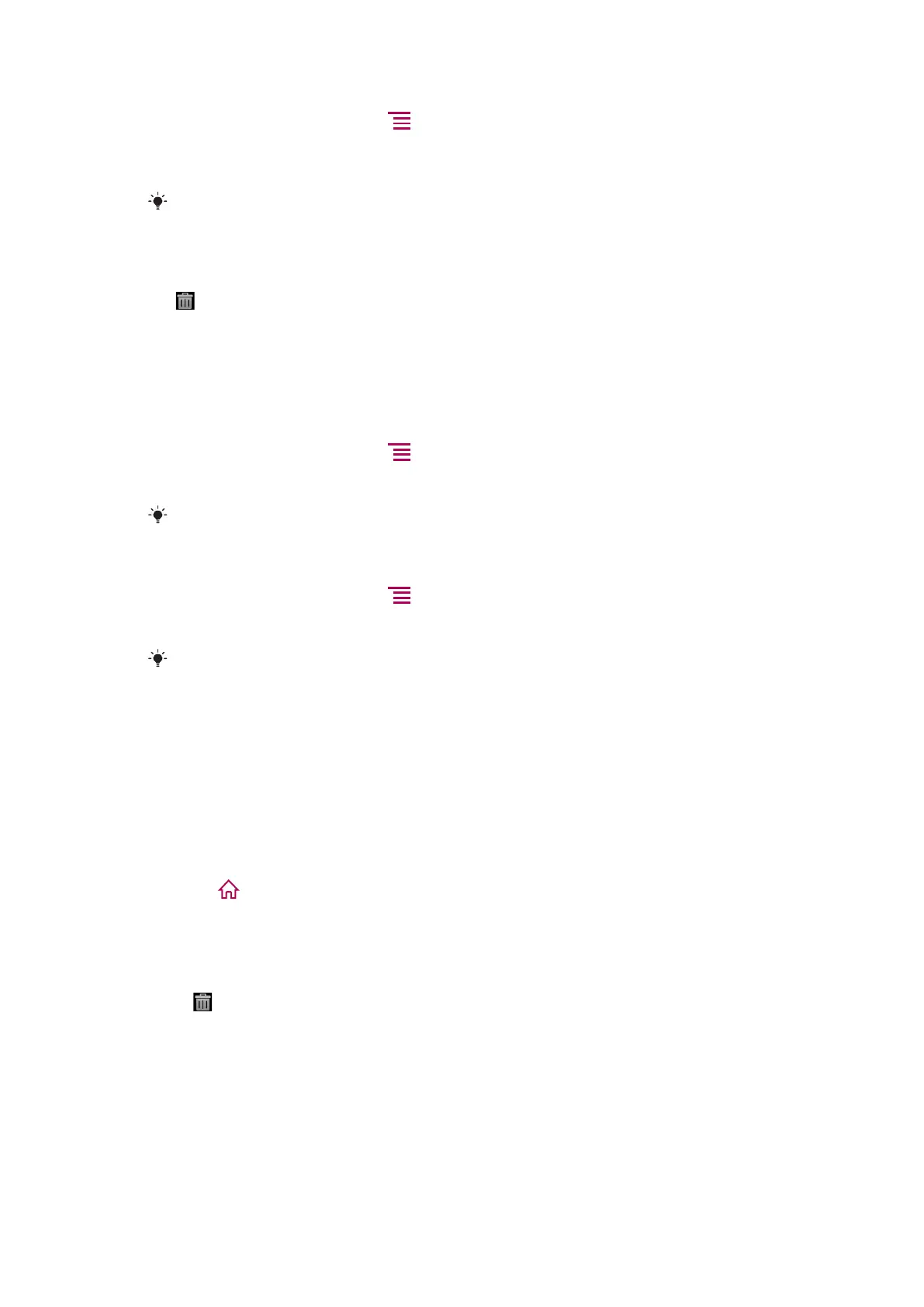 To delete an item from the Home screen