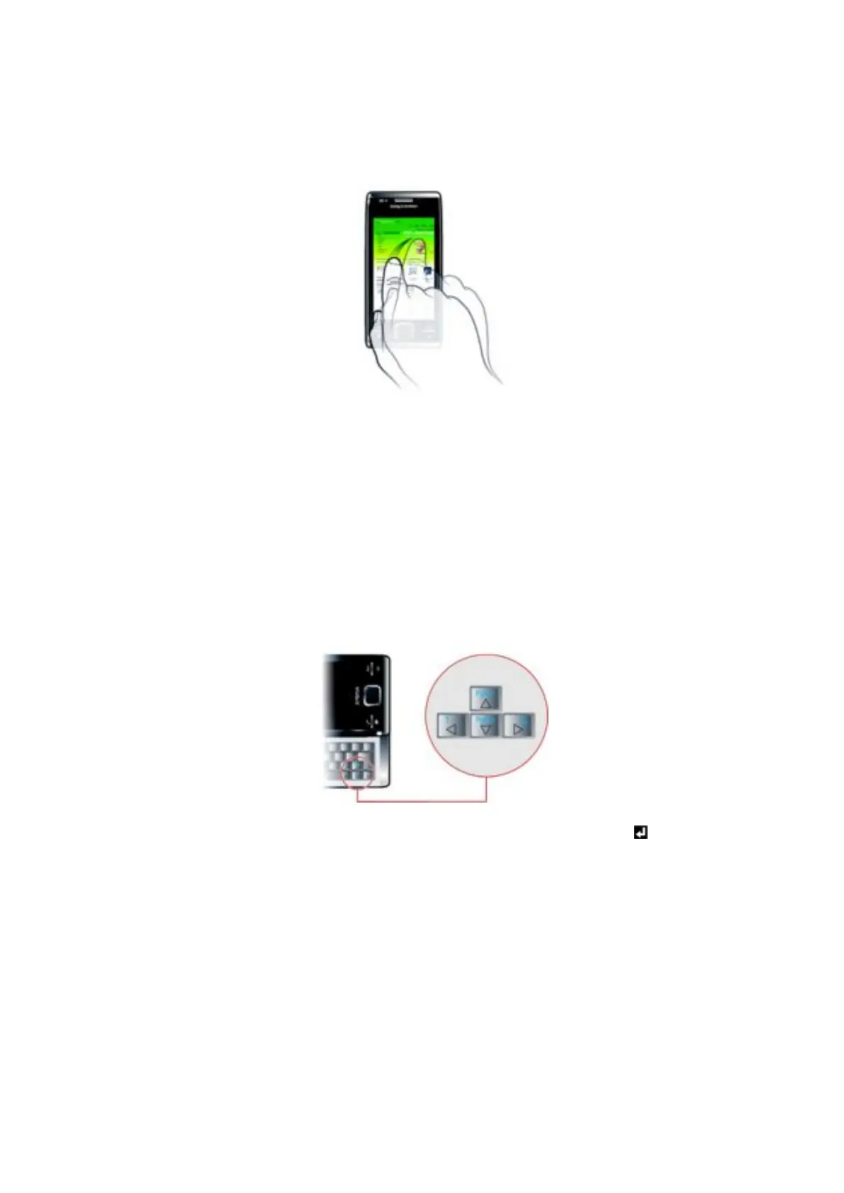 To scroll, tap the screen and slide up or down. On some pages you can also slide to the