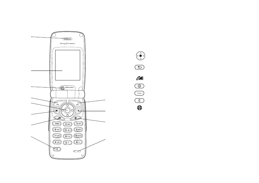 8 Press and hold to turn the phone on or off.