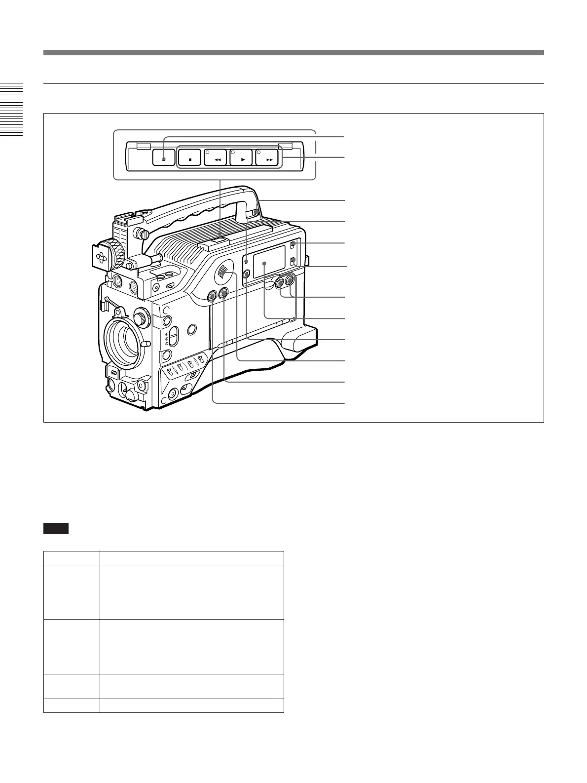 Rewinds the tape. The indicator lights while