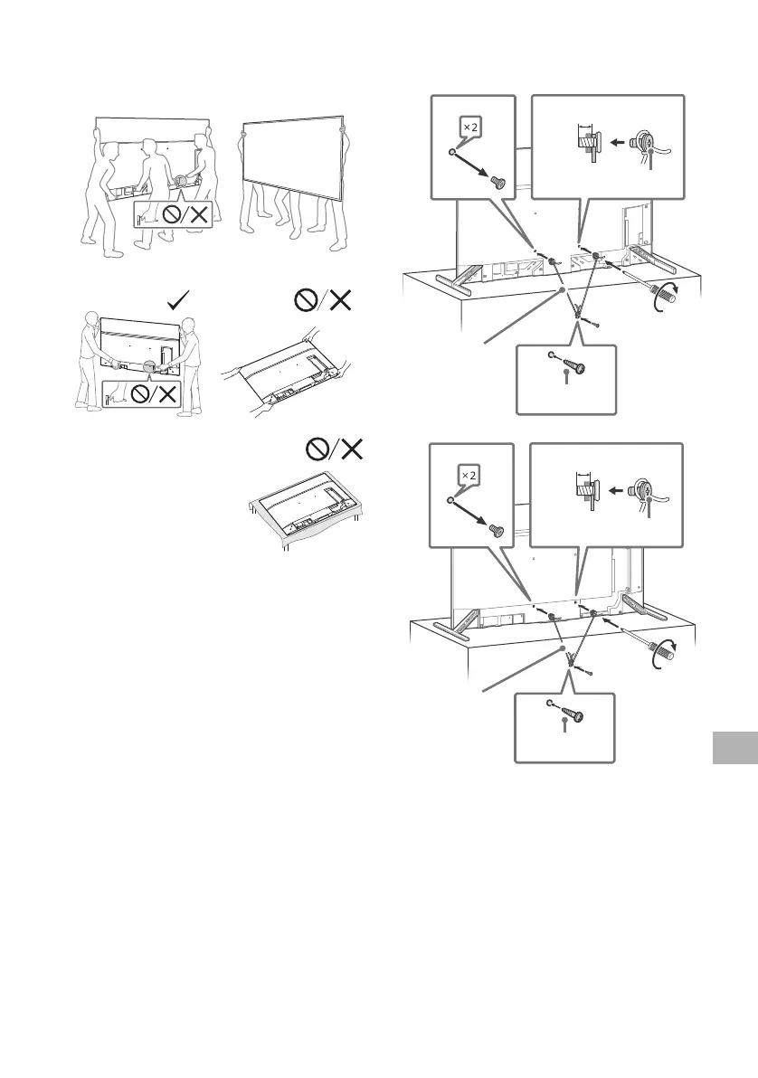 • Când transportaţi manual aparatul TV, susţineţi-l așa cum este
