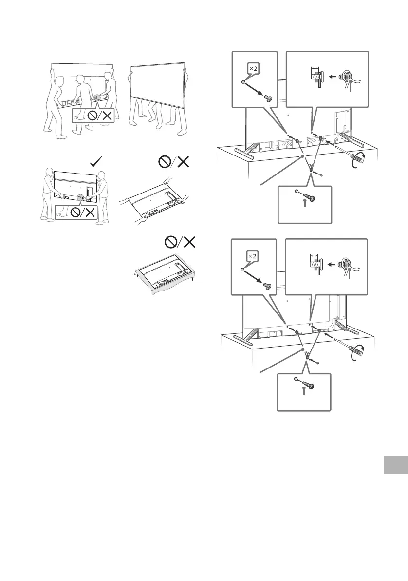 • Televizyon elle taşınırken aşağıda gösterildiği şekilde tutun.