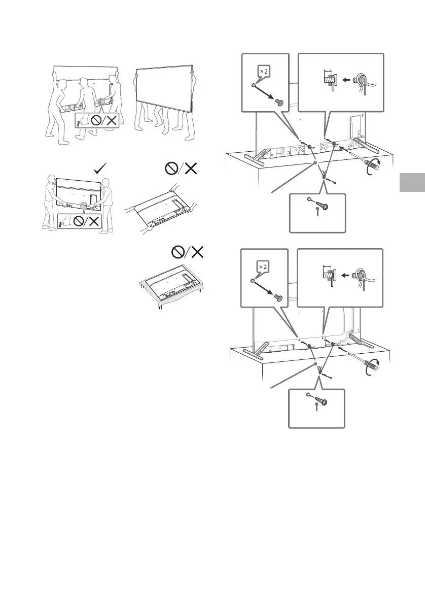 • Wenn Sie das Fernsehgerät ohne Hilfsmittel transportieren,